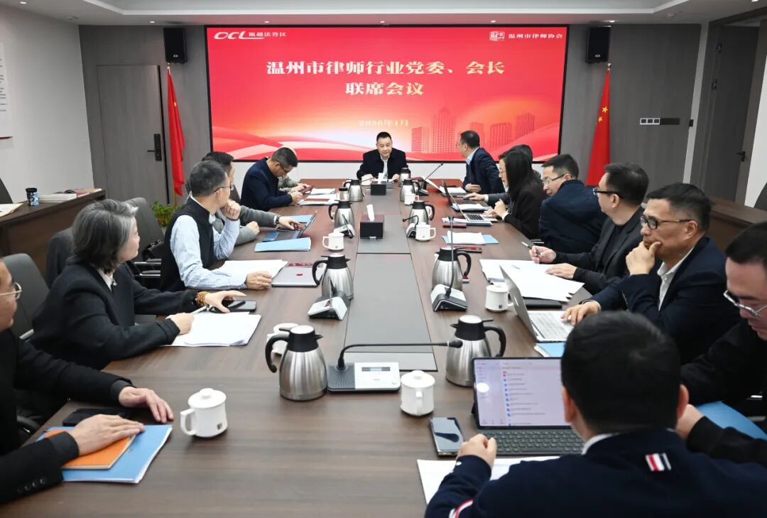 1月16日,温州市律师协会组织召开市律师行业党委、会长联席会议。市司法局党委委员、副局长刘贤平,市律师协会会长金疆,市司法局律工处处长董航等出席会议。市律师协会监事长杨康乐列席会议并发表监事意见。