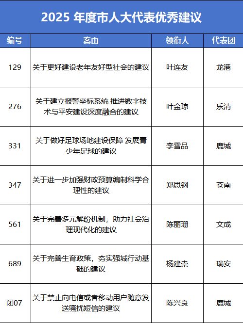 7项建议获评2025年度市人大代表优秀建议,约占获奖总数18%1提案被确定为市政协十二届四次会议以来的重点提案。