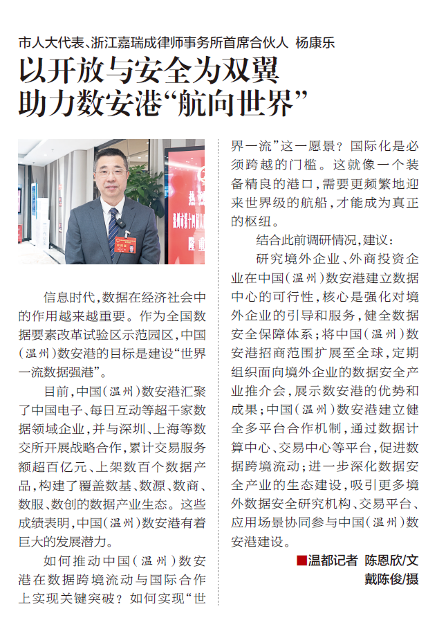 • 关于推进中国(温州)数安港开展数据跨境流动和国际合作的建议