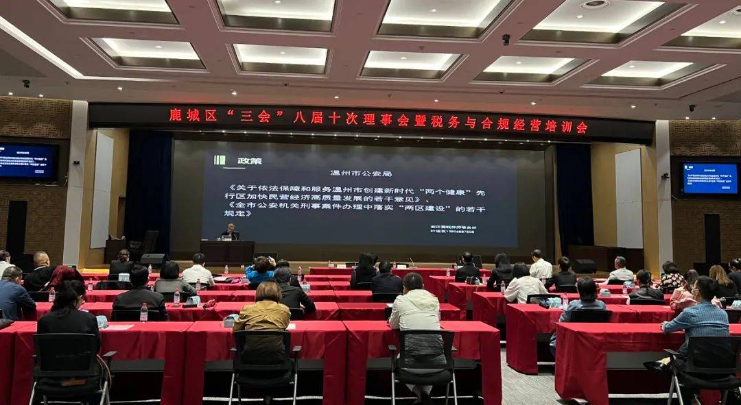 为了进一步推进民营企业“两个健康”发展,规避经营风险,促进企业健康发展,5月12日鹿城区企业联合会、鹿城区企业家协会、鹿城区工业经济联合会举办鹿城区“三会”八届十次理事会暨税务与合法合规经营培训会,孙国勇会长、陈时升执行会长出席会议。