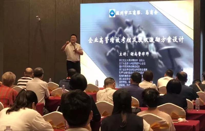 近日,由温州市总商会主办、浙江光正大律师事务所承办的企业高管培训班举行。光正大所投资与风险管理中心主任谢尚誓律师担任本次培训的讲师,谢尚誓律师开展点单服务,为企业高管送上了《企业高管绩效考核和股权激励方案设计》专题培训。