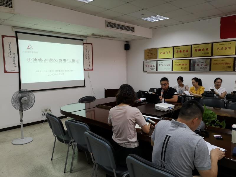 8月9日,谢忠凯律师带来了主题为《宪法修正案的启发与思考》专题讲座。谢忠凯律师从“宪法是国家根本大法”“宪法序言部分的修改”“宪法条款部分的修改”“国家监察体制改革”“宪法修改的重大意义”五个方面详细讲解了此次宪法的修改内容及所产生的法律、社会意义。