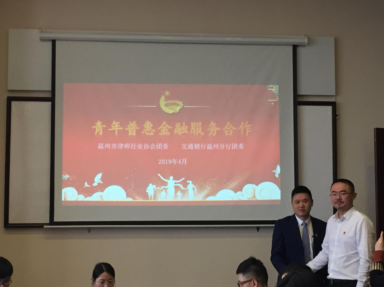4月18日,温州市律师行业团委与交通银行温州分行团委达成普惠金融服务合作方案。