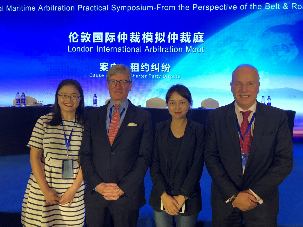 杨萌阳、何旸律师代表与伦敦海事仲裁员协会主席Ian Gaunt(左二),伦敦海事仲裁员协会前主席Clive Aston(右一)合影