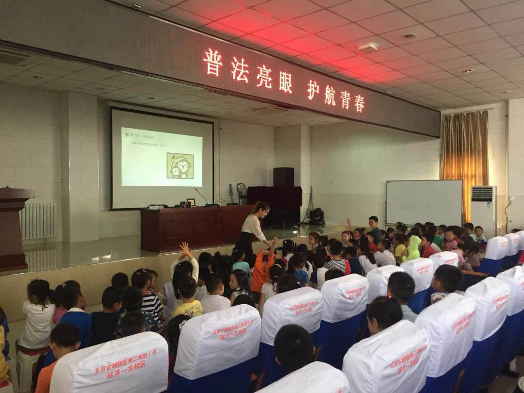 9月12日下午,杨涛律师给北京市朝阳区十八里店小学四、五、六年级的小朋友各带来了一场生动有趣的普法讲座。9月13日下午,杨涛律师又给北京市朝阳区第二实验小学的四、五、六年级小朋友各带来了一场普法讲座。普法活动上孩子们高涨的热情、踊跃的回答和聚精会神的聆听,都在展现着创新式普法教育的成功。