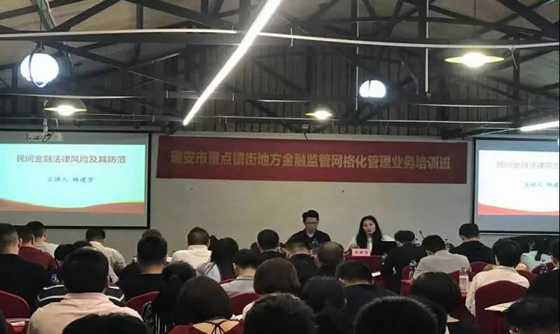 二是指派律师协助市金融办开展重点镇街地方金融监管网格化管理业务培训班。邀请浙江瑞大律师事务所主任杨建崇作《民间金融法律风险及其防范》专题讲座。讲座从金融法律风险的概念、分类和套路贷的相关罪名、典型案例出发,深入讲解了金融法律风险。
