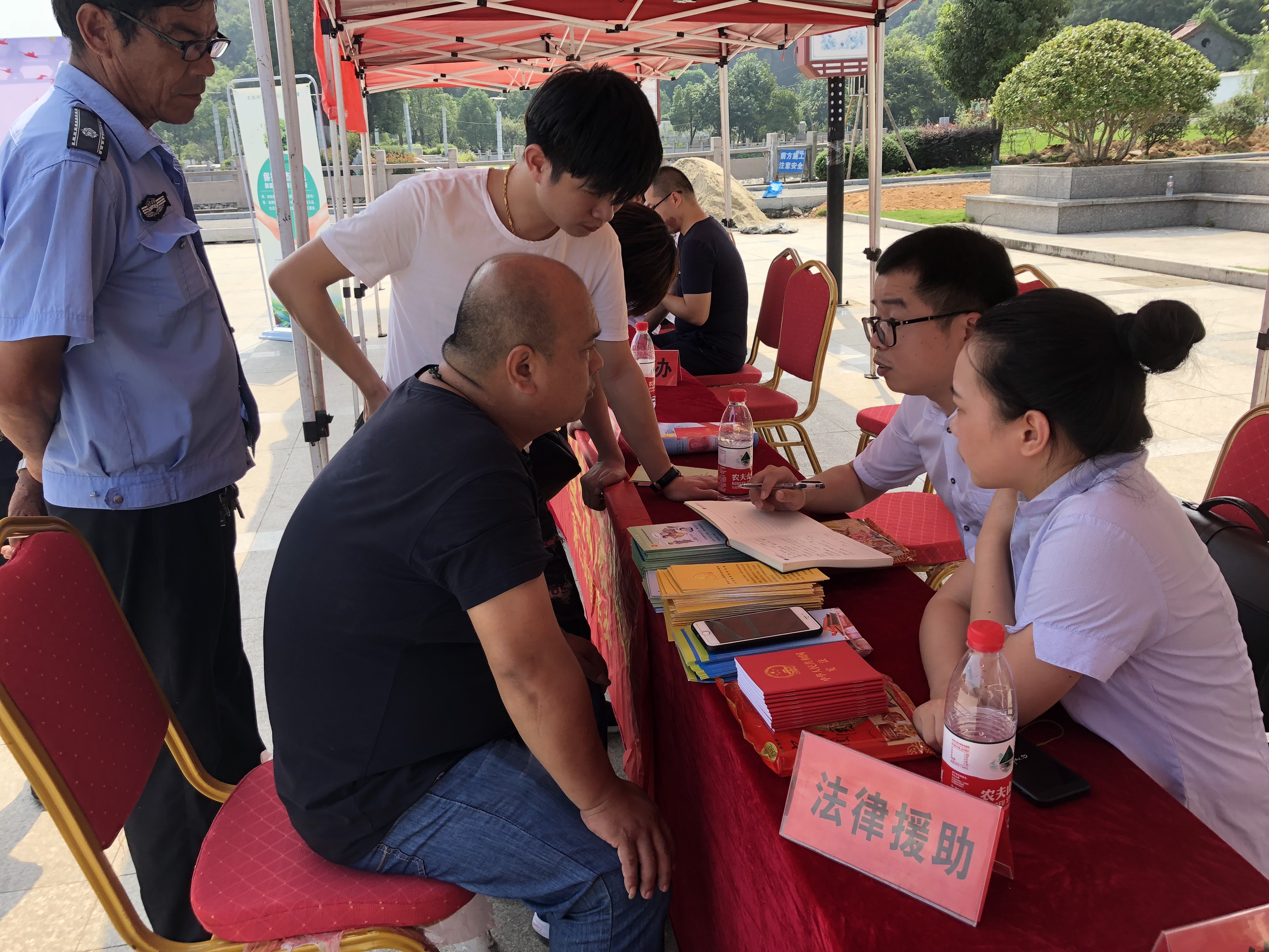 在“全国质量月”期间,平阳县司法局萧江司法所联合萧江镇综治办、市监、国土、环保、安监、移动、电信等单位在萧江镇桔坡山公园文化广场开展“质量月”法治宣传活动。