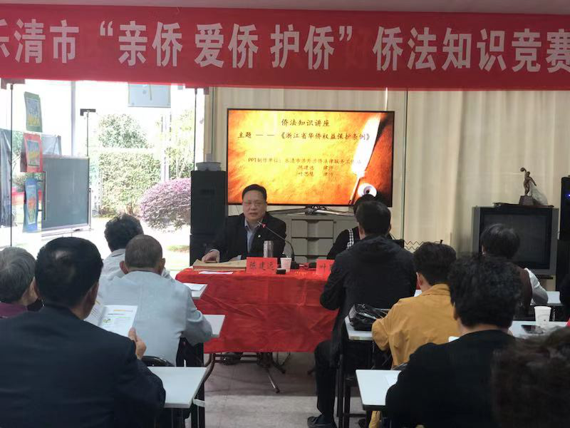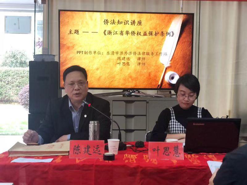 10月31日下午,乐清市涉外涉侨法律服务工作站的首席律师陈建远、叶思慧律师应邀在乐怡文化礼堂为百余名华侨、侨眷、留学生开展了将于2018年12月1日实施的《浙江省华侨权益保护条例》专题公益讲座。