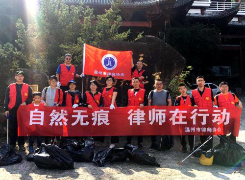 为倡导绿色环保、文明健康、志愿公益的新风尚,温州市律师协会公益与社会责任委员会委员于11月11日挥舞旗帜,走进了温州市瓯海区茶山街道大罗山景区,开展公益垃圾活动,拉开了“自然无痕 ,律师在行动”之系列公益活动的序幕。