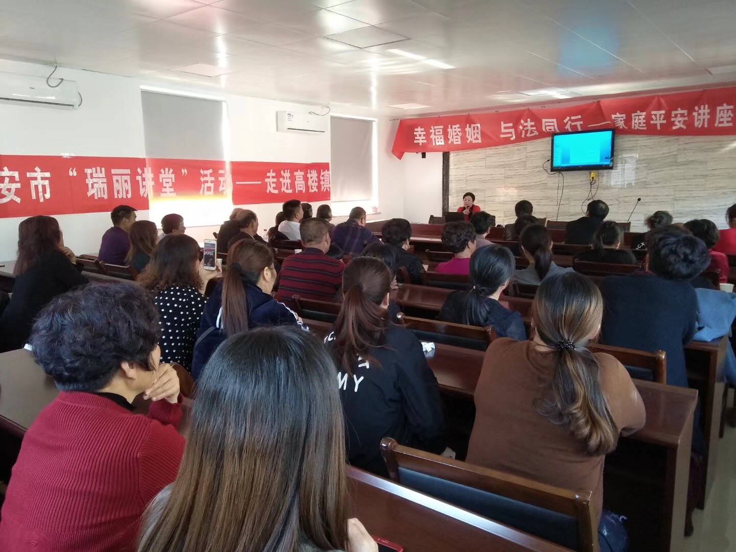 11月29日,浙江安瑞律师事务所周大红律师在瑞安市高楼镇宁益社区作“幸福婚姻,与法同行”主题讲座,为当地50余名妇女群众送上精神大餐。