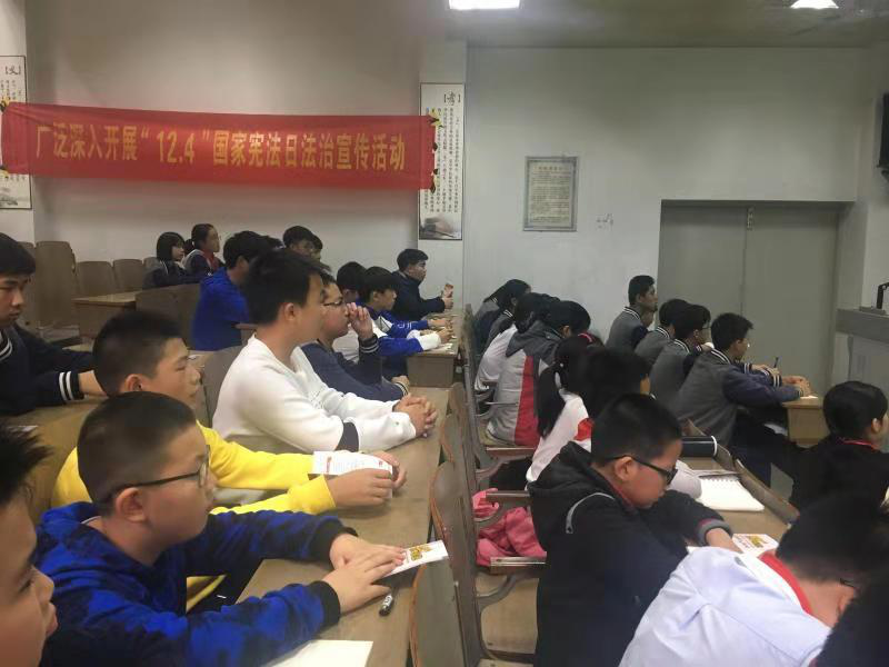 12月4日下午,浙江开盛律师事务所律师池万浩来到丽岙街道任岩松中学,在“12.4全国宪法日”这一天为中学生们上了一堂内容为《宪法修正案的浅析》的讲座。
