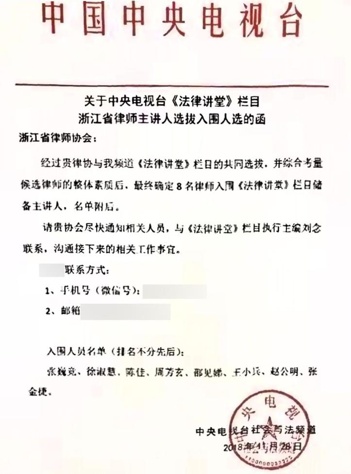 嘉瑞成合伙人邵见娣律师经央视《法律讲堂》栏目编审组结合浙江律师主讲人选拔现场录像及评分等综合考量入围《法律讲堂》栏目储备主讲人,成为温州市唯一入围的律师。 《法律讲堂》是CCTV12开设的一个特色普法类栏目,2018年是栏目开播的第14个年头。自2011年央视实施综合评价体系至今,该栏目连续多年获得了品牌栏目称号,在央视400多档常规栏目中综合排名连续五年位列前30强。主讲人队伍包括律师、法官、检察官、人民调解员等多个行业的法律从业者。 (瓯海区司法局法管科)