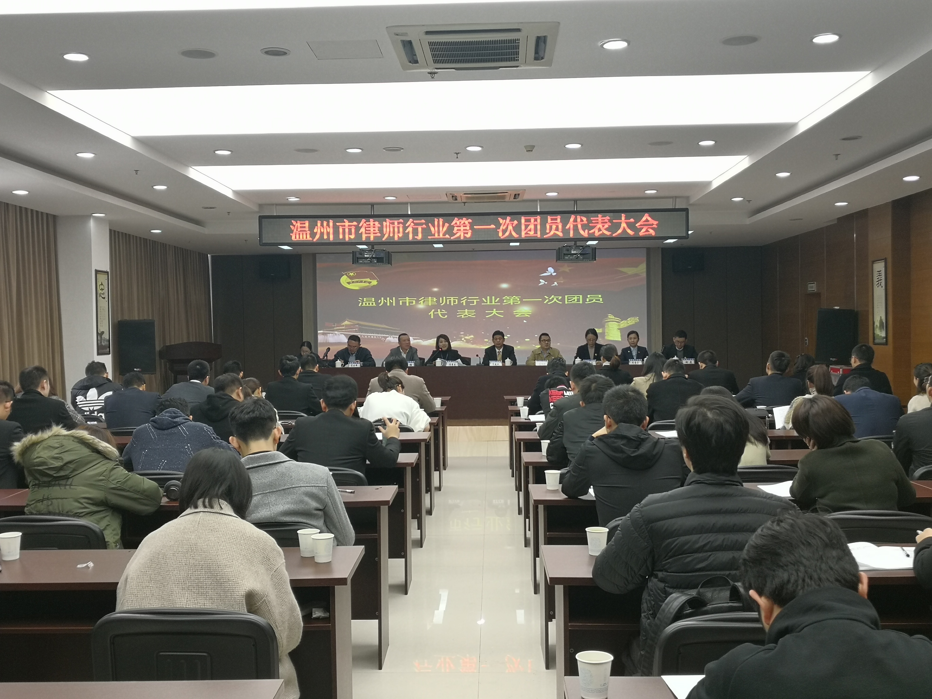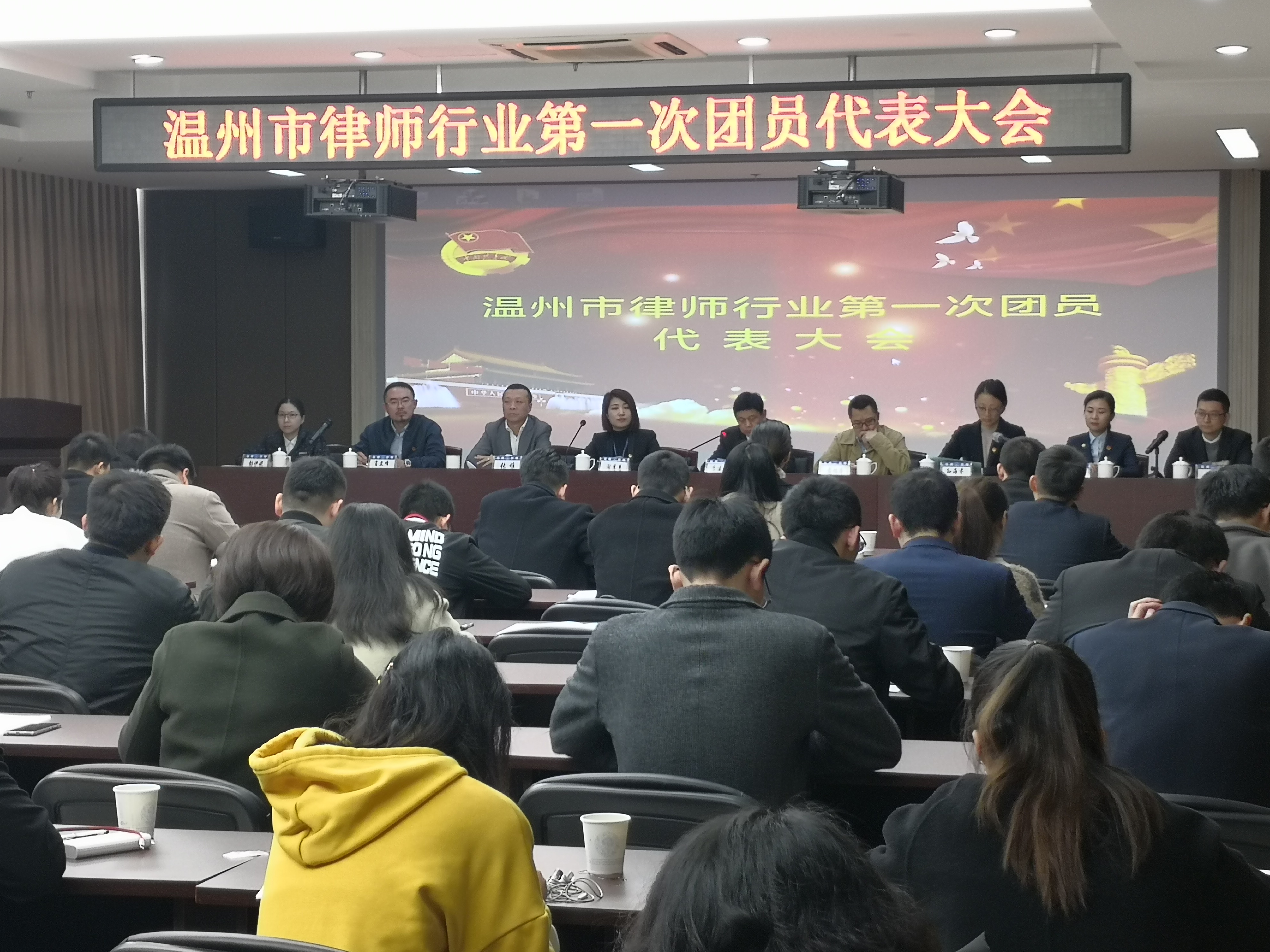 2018年12月23日,温州市律师行业第一次团员代表大会在市司法局八楼召开。会议审议通过了市律协第二届团委工作报告,并选举产生肖立峰、柯展、彭伊妮、李政、余伟、杨涛、施园园、钱明、黄冰莹等9名委员组成的共青团温州市律师行业第一届委员会。新当选委员随即召开市律师行业团委第一次会议,选举肖立峰为团委书记,柯展、彭伊妮为副书记。