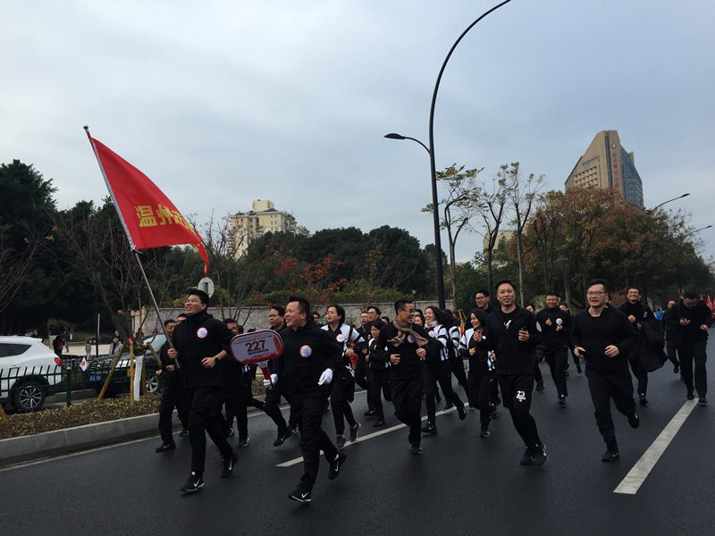 冬日的早晨寒意甚浓,世纪广场却洋溢着热闹喜庆的氛围。7时30分,《义勇军进行曲》缓缓奏起,国旗在雄壮的旋律中冉冉升起,广场上万人齐聚,面向国旗,全体立正齐唱国歌。升旗仪式上,市委副书记、市长姚高员发表新年致辞,代表市四套班子,向全市人民和参与温州建设的新温州人、关心支持温州发展的各界人士,致以节日的问候和美好的祝愿。随着发令枪响,来自全市各机关企事业单位、大中院校、金融机构、驻温部队、社会团体近16000余人,239支方队井然有序地从世纪广场出发。由我市50名律师组成的温州市律师协会方队,迈着矫健的步伐,满怀着新的期盼,以响亮的口号、整齐的队形迎着新年第一缕的阳光,途经市府路、惠民路、锦绣路、府东路一路奔向终点,全程约4000米。