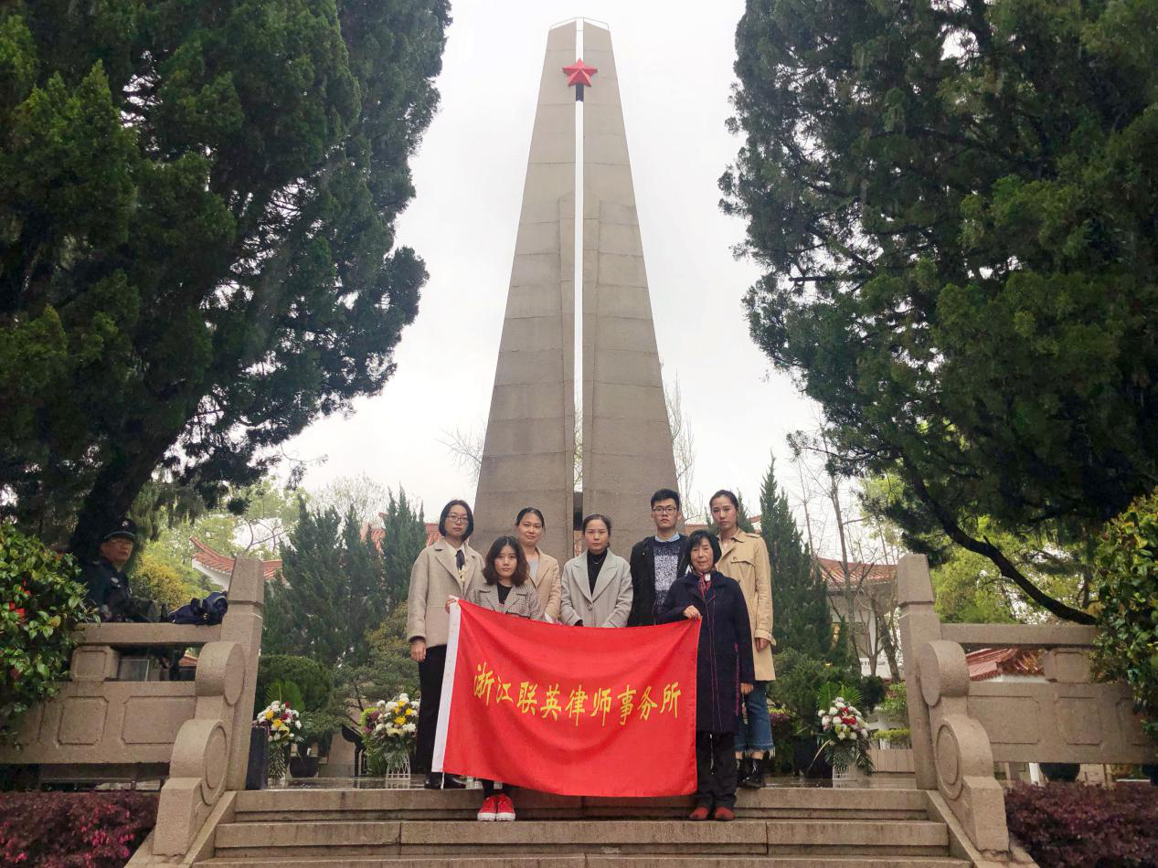 为缅怀先烈,慎终追远而善行,2019年4月3日下午,浙江联英律师事务所党员、团员代表来到温州市江心屿革命烈士纪念馆举行烈士墓祭扫活动。 雨幕天穹下,烈士纪念碑前,联英所党员、团员代表们唱响国歌,敬献花圈,神情肃穆地鞠躬、默哀,表达对英烈的崇敬和缅怀之情;在烈士纪念馆里,联英所党员、团员代表们观青简而慰忠魂、明史实以感辛烈,重温历史的厚重与革命精神的永垂不朽。 “春风已解千层雪,后辈难忘先烈恩”,先烈们的精神鼓舞、激励着联英所党员、团员代表们,让联英所党员、团员代表们鼓舞斗志,勇往直前。