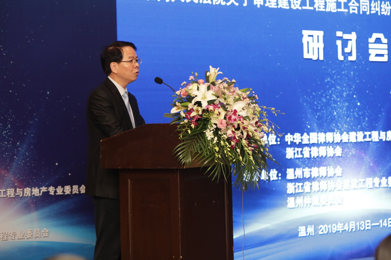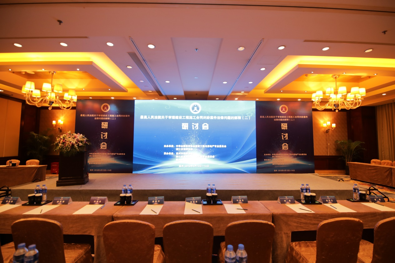 2019年4月13日至2018年4月14日上午,由中华全国律师协会建设工程与房地产专业委员会、浙江省律师协会主办,温州市律师协会、浙江省律师协会建设工程专业委员会、温州仲裁委员会承办,温州市律师协会建筑与房地产专业委员会协办的《最高人民法院关于审理建设工程施工合同纠纷案件适用法律问题的解释(二)》实务研讨会在温州市香格里拉大酒店成功举办。本次研讨会是全国律协建房委换届后举办的首次大型活动,吸引了全国范围内的350余名律师、仲裁员、仲裁工作人员等参会交流。