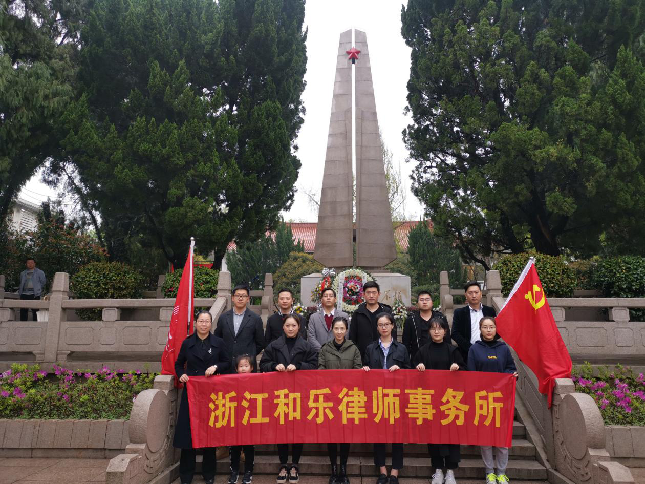 4月4日下午,为纪念这个有着深远意义的节日,弘扬中共党员敢于牺牲、团结互助的精神,和乐所党支部金科书记带领和乐所党支部在温州江心屿组织了“清明祭英烈、共铸和乐魂”的活动。暮春清明,苍松翠柏之中,市烈士陵园显得格外庄严肃穆,怀着对逝者的无限追忆,和乐律师事务所党支部成员、入党积极分子以及其他部分律师参与了本次公祭革命烈士扫墓活动。