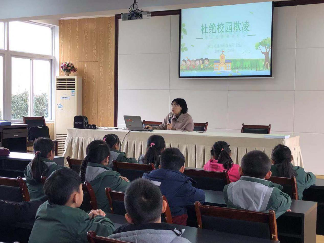 近日,瓯海区司法局组织浙江开盛律师事务所律师陈晓明、徐洁来到丽岙街道华侨小学多功能教室,为该校三年级段孩子们上法治讲座,主讲内容《杜绝校园欺凌法制宣传》。