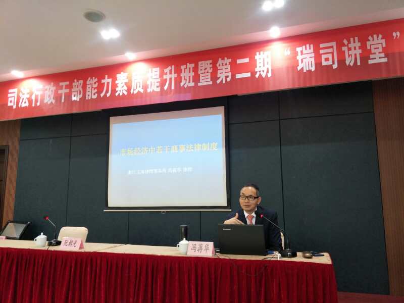 翌日上午,冯蒋华律师又受邀为瑞安市司法局工作人员作了《市场经济中若干商事法律制度》的主题讲座。