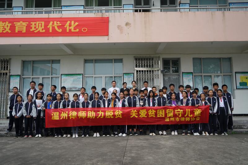 5月8日,市律师协会公益与社会责任工作委携手苍南县扶苗公益中心在苍南县灵溪镇浦亭社区燕头村的浦亭学校开展“温州律师助力脱贫,关爱贫困留守儿童”主题公益活动。此次活动中,温州律师为孩子们开展了普法讲座,还进行了模拟法庭和法律知识竞答,深受老师的好评和同学们的喜爱。市律师协会副会长姜正还代表温州律师向11名家庭贫困、成绩优异的留守儿童发放了慰问金。本次活动,不仅给乡村的留守儿童上了一堂生动的普法课,更给他们带去了关爱。