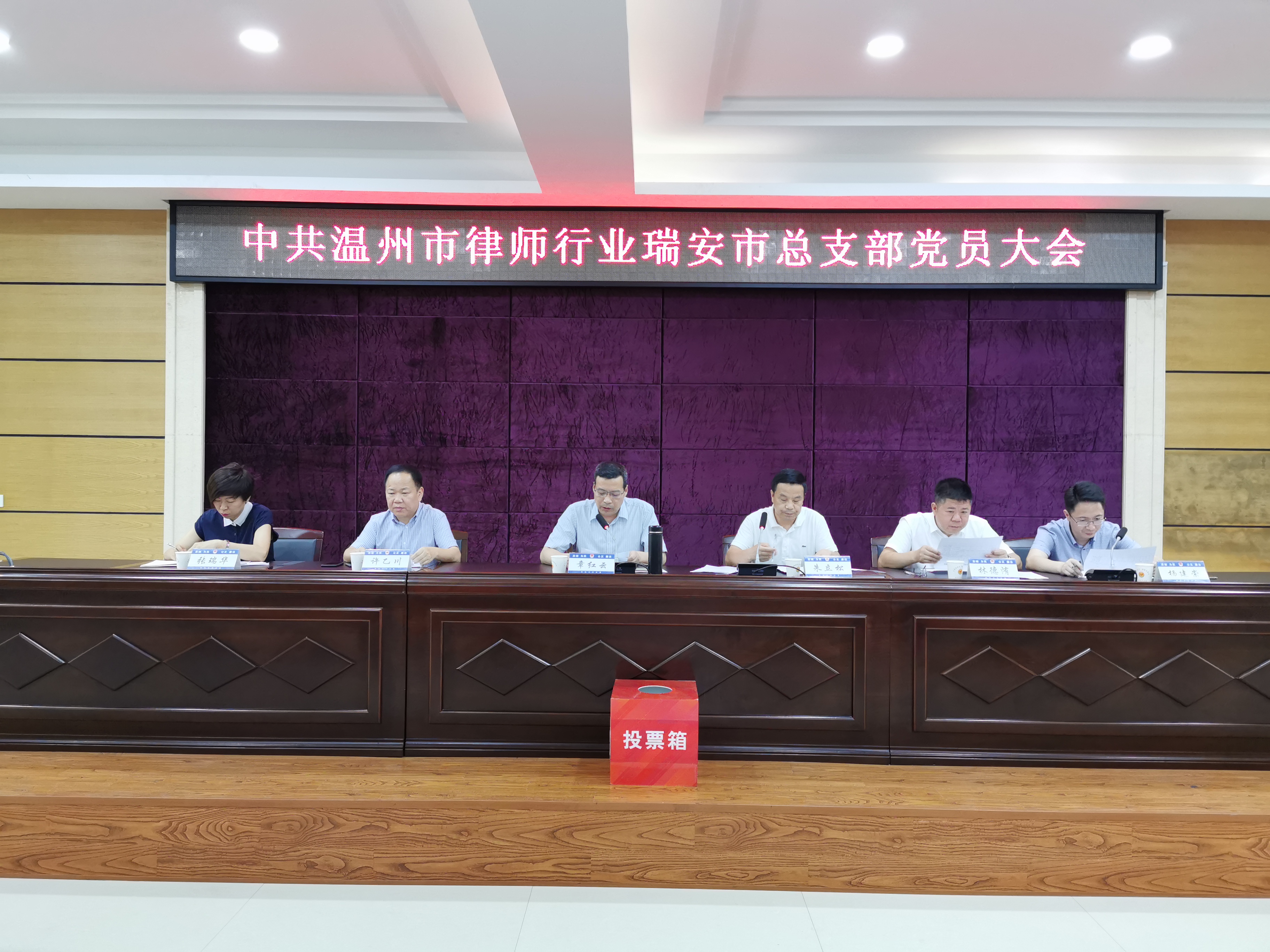 2019年6月6日,中共温州市律师行业瑞安市总支部在瑞安市司法局六楼会议室召开了全体党员大会,举行总支部委员会换届选举,选举产生第三届总支部委员会。会议由朱立松同志主持。