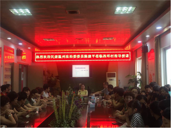 6月27日下午,瑞安市安阳街道西垟村妇联换届之际,陈建平律师应邀代表民建温州法治委为西垟村开展《妇女维权法律知识》讲座,西垟村妇女代表50多人参加培训。