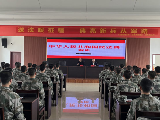 2022年3月1日下午,乐清市人武部和乐清市司法局联合在乐清市民兵训练基地开展“送法暖征程,典亮新兵从军路”活动,浙江嘉瑞成(乐清)律师事务所杨寒琪应邀为即将入伍的新兵讲解《民法典》。