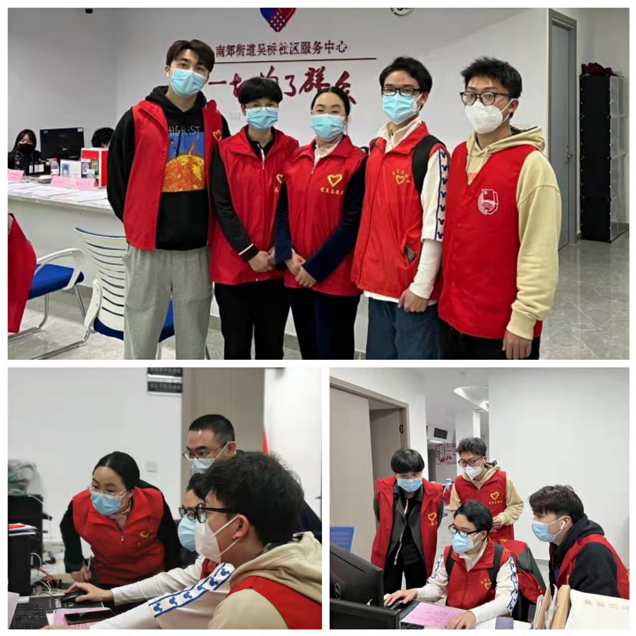 小组6:协助西屿社区工作人员整理流调数据和系统输入,告知被排查对象要积极做好核酸检测、自觉居家隔离,并按时到其居住社区进行报到等工作;进入封控、管控、防范区域内的金凯家园,协助工作人员为居家隔离居民运送防疫物资、相关法律政策解答、粘贴封条等防疫工作;为当日防疫汇总数据进行梳理分类工作。