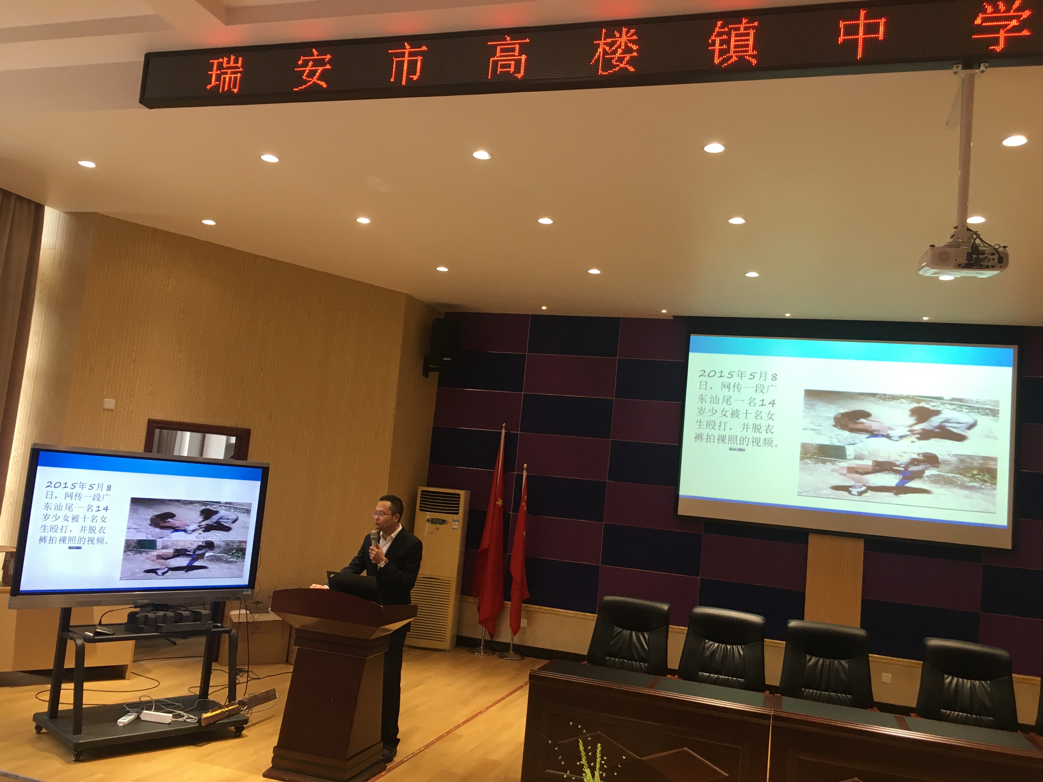 近日,浙江联冠律师事务所陈光如律师受邀为瑞安市高楼镇中学100多名在校学生上了一堂反校园霸凌的法律公益课--从电影《少年的你》展开。