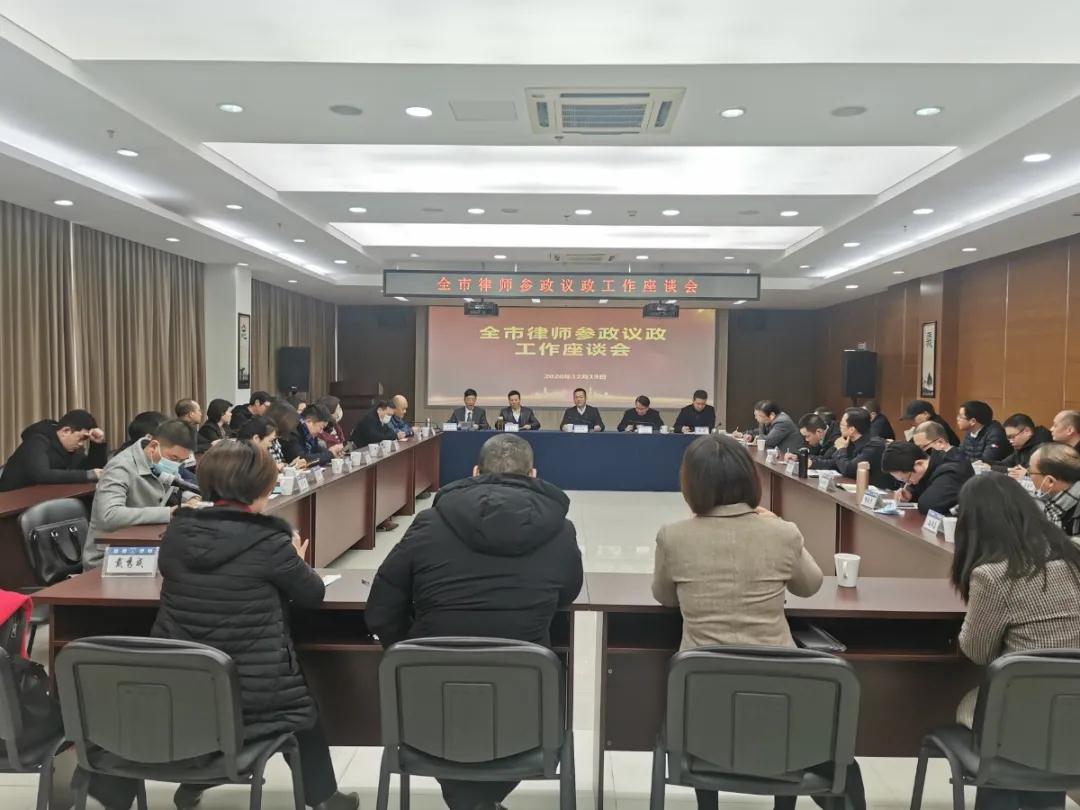 12月19日,全市律师参政议政工作座谈会在市司法局8楼会议室召开。我市省、市、县三级律师人大代表、政协委员,市律协参政议政工作委委员共50余人参加座谈。市司法局党委委员、副局长、市律师行业党委书记林向光出席座谈会。