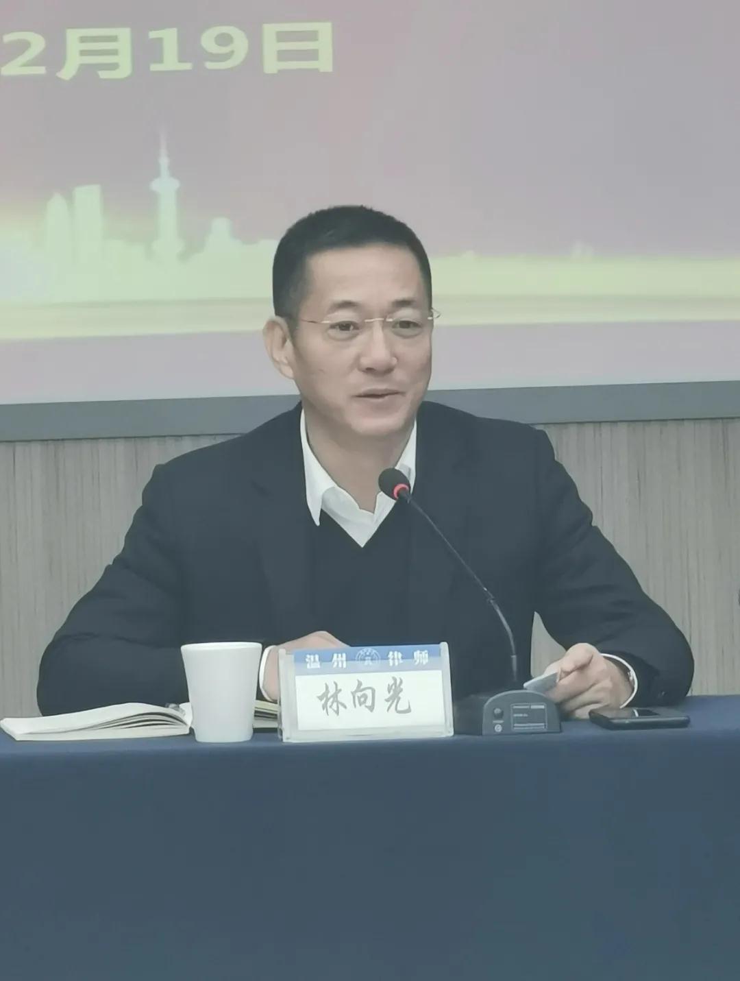林向光副局长对我市律师行业参政议政工作予以了充分肯定,希望协会要将温州律师参政议政工作经验和做法及时总结提炼,打造品牌。他要求,一要树信心、凝共识,不断提高律师政治站位,这是做好参政议政工作的根本前提;二要重发展、扩影响,充分发挥律师专业优势,从党委政府中心工作、民生发展等社会热点事件和问题实际出发,有针对性的提出建议、提案;三要懂规矩、守纪律,坚决筑牢律师执业底线,呵护良知、践行法治,以维护社会公平与正义为使命。他强调,每一位律师代表、委员都要充分认识到对国家、对人民的责任感和使命感,认真履行职责,将律师工作和社会经济发展相结合,不断增强自己的履职能力,努力提升我市律师参政议政的广度、深度和亮度。