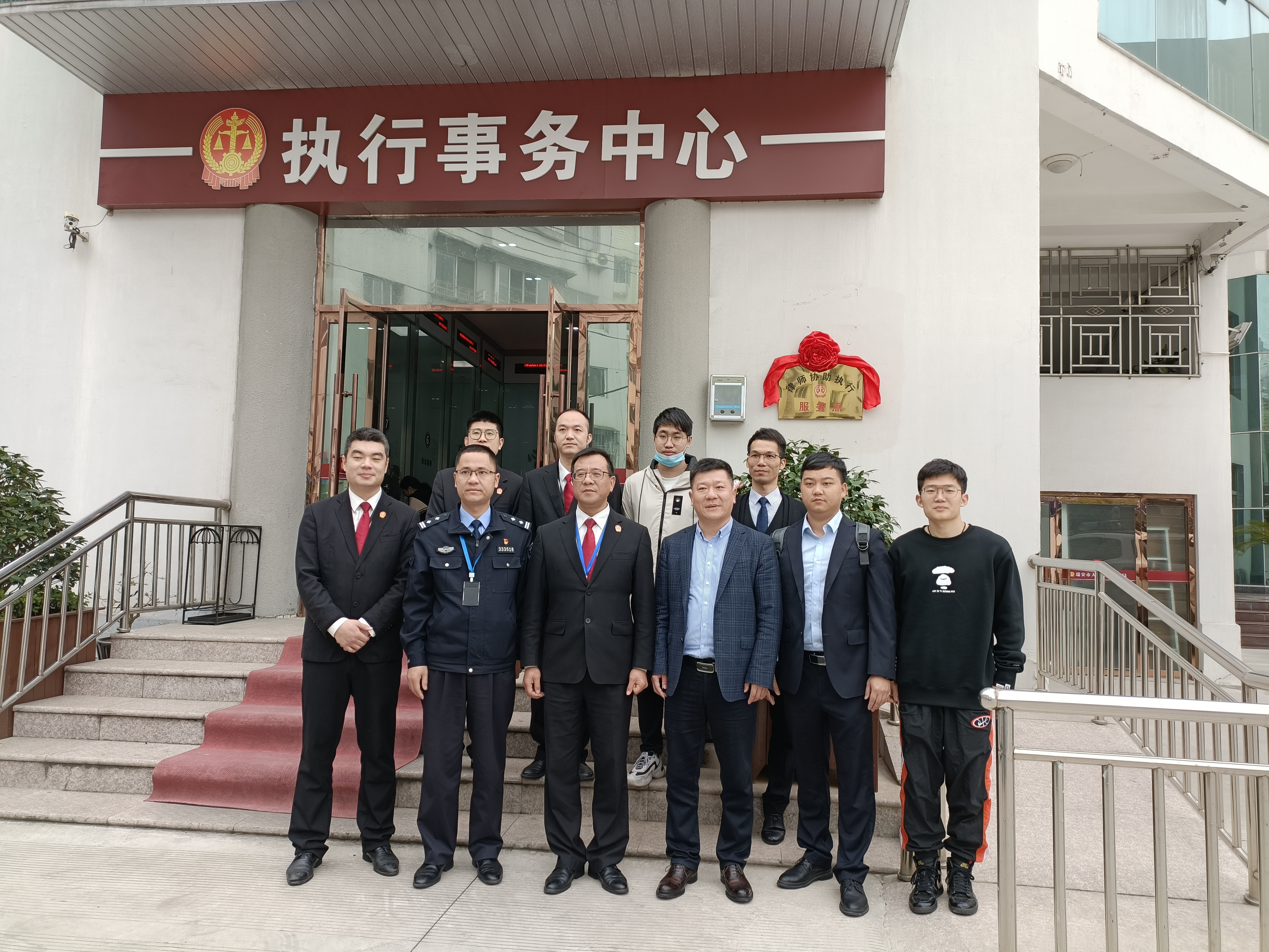 2021年4月6日上午,由瑞安市人民法院执行局、瑞安市司法局、温州市律协瑞安分会共同设立的律师参与执行工作服务点正式揭牌成立。瑞安市人民法院执行局陈金春局长、黄建丰副局长、温州律协瑞安分会周建深副会长等参加揭牌仪式。