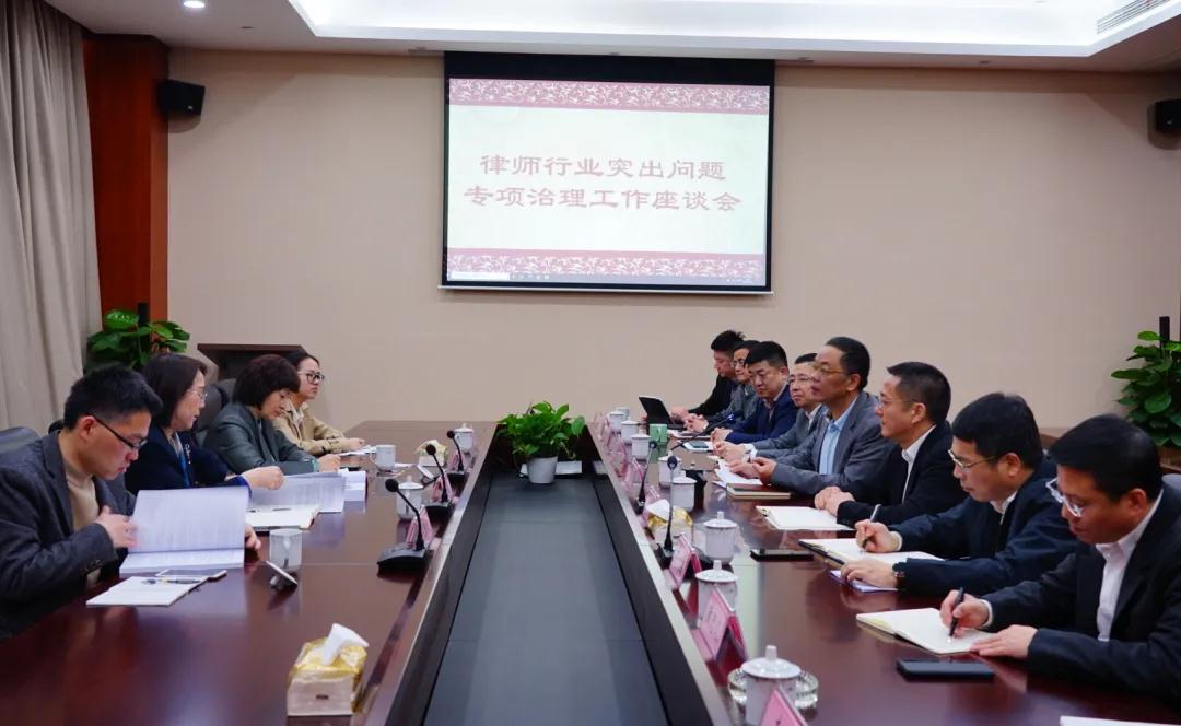 4月14日,浙江省司法厅王兰青副厅长一行,在温州市司法局副局长林向光、瓯海区司法局局长丁建勇等陪同下到嘉瑞成所,调研、督察律师行业突出问题专项治理工作。所主任童洪锡、管委会主任杨康乐及管理班子成员马文兵、黄锡楚、戴盛等参加座谈。