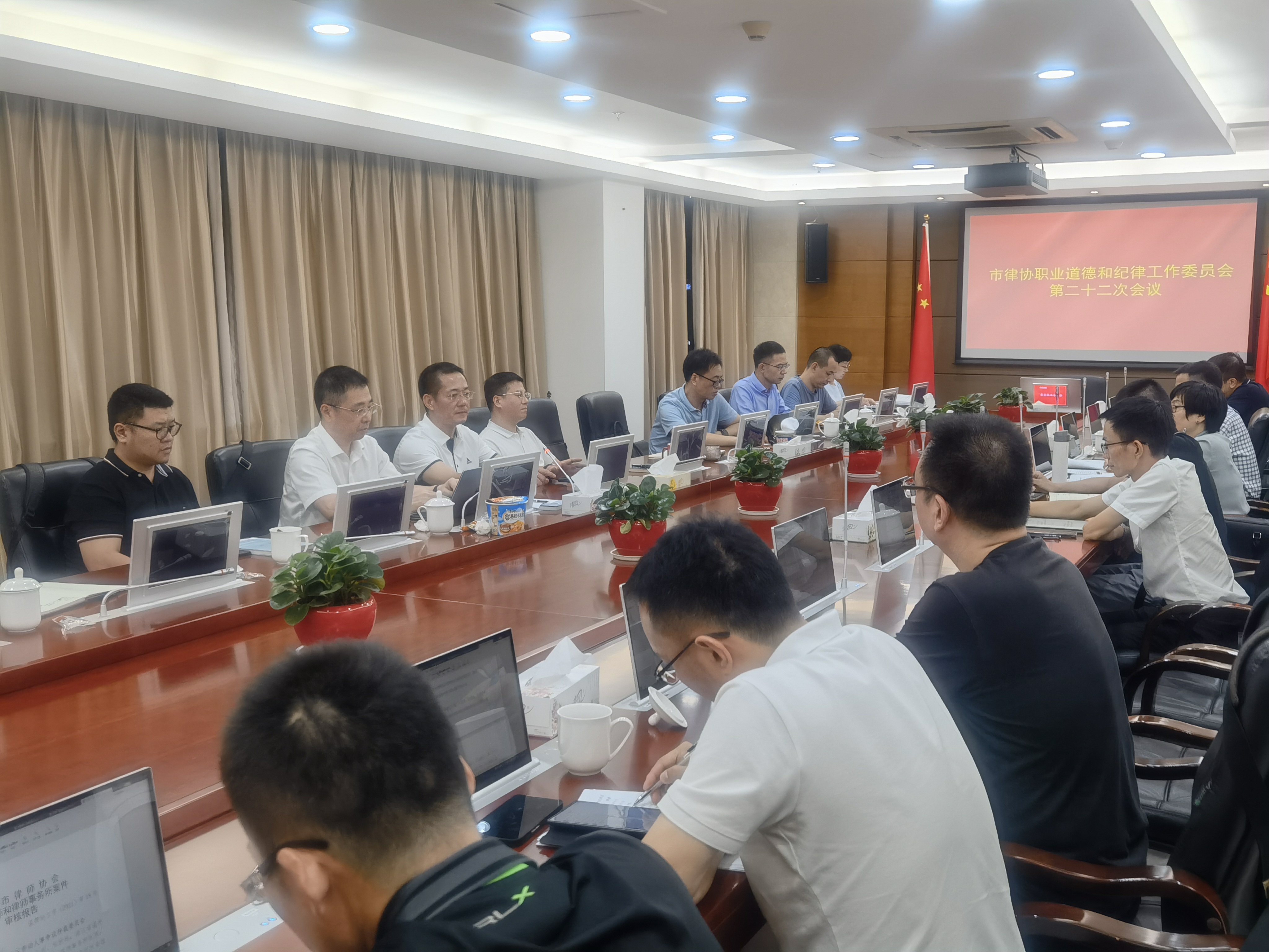 2021年9月29日,市律协职业道德和执业纪律工作委员会召开2021年度第九次工作会议。会议由市律协常务副会长、道纪委主任杨康乐主持,市司法局党委委员、副局长、市律师行业党委书记林向光,市司法局律师工作处处长黄忠义出席会议。