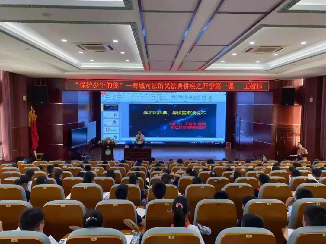 浙江和乐律师事务所王省伟律师为海城二小学生开展了“学习民法典,与校园欺凌说不”专题讲座,讲座过程中学生们发言踊跃,现场气氛活跃。