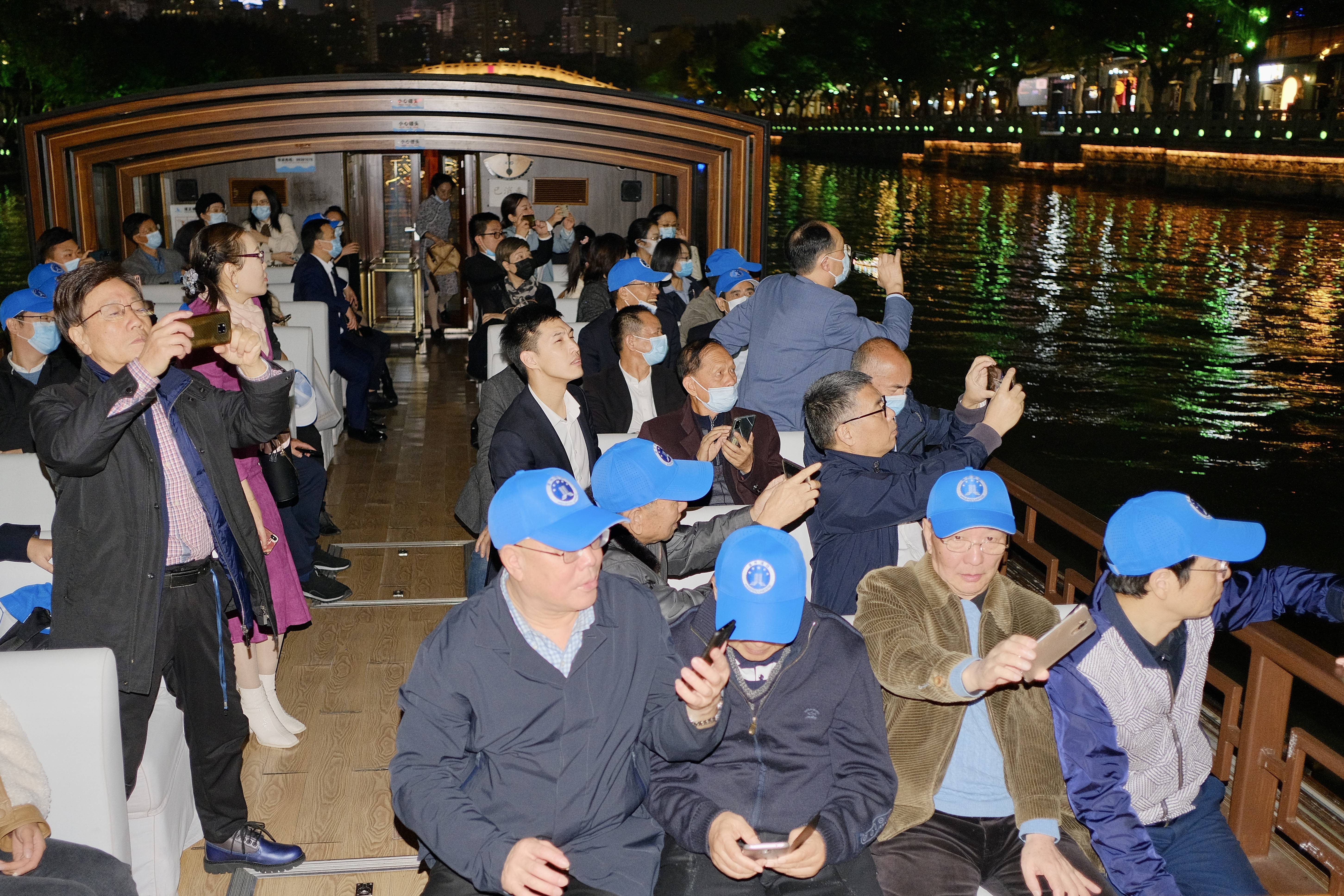 大家乘坐游船观“塘河夜画”,游船行进中配合时间轴欣赏了“永嘉学派”“韦庸治水”“谢灵运作诗”“郭锺岳对唱《竹枝词》”“塘河人家”等串联演出,看到了温州地方特色的民间传统元素与现代科技元素的融合,深深感受到了瓯越儿女奋斗拼搏、眷恋家乡的情感。活动结束后,老律师们纷纷表示大饱眼福、不虚此行。