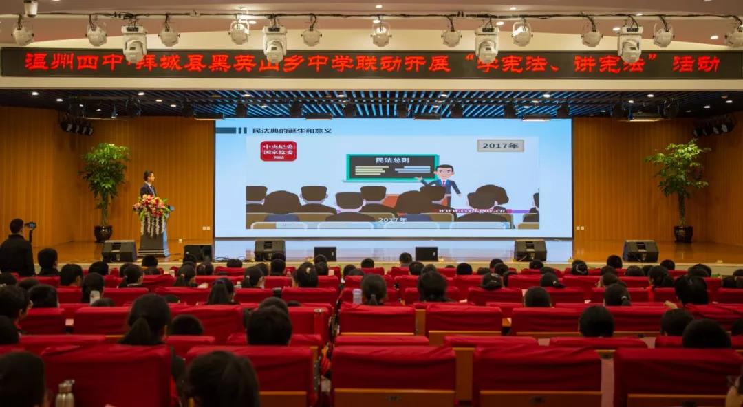 12月3日,浙江六和(温州)律师事务所柯展律师在温州市第四中学开展了法律宣讲活动,并通过视频连线,同步向新疆拜县黑英乡中学的学生在线宣讲。柯律师为同学们介绍了民法典的诞生、意义及对生活的影响等诸多知识,让同学们对《民法典》有了更全面的了解和更深刻的认识。