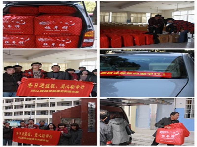 2011年12月10日,由浙江震瓯律师事务所团支部牵头开展了“冬日送温暖,爱心助学”扶贫活动,活动对象为温州萤火虫义工团联系的永嘉昆阳乡小学。此次扶贫活动,震瓯所党支部、叶连友主任给予了大力的支持,各位律师和行政人员均积极参加,共筹集资金一万多元及大量的全新书籍、衣物等。团支部用该笔资金购买了学生学习用品及过冬的生活用品。12月10日早上,在震瓯所团支部的带领下,一行七人经过近两个多小时的车程将该批物资运抵昆阳小学。昆阳小学校长、书记、总务主任等对此次扶贫活动给予高度的评价,并承诺做好具体的落实措施。下午三时,震瓯所团支部一行圆满完成此次扶贫活动,平安返回。