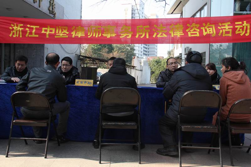 根据温州市律师协会转发的中华全国律师协会《关于开展“执业为民送温暖,法律服务献爱心”活动》的通知精神,2月1日上午,浙江中坚律师事务所组织部分律师及实习律师,在该所办公大楼楼下悬挂横幅开展近三个小时的免费法律咨询活动,为来往市民及外来务工人员提供法律咨询。为了有效开展该项活动,中坚所还结合本所实际制订了活动方案,如在广场咨询活动结束后,设定专门咨询台安排执业律师专门接待,公布咨询热线等。此次活动的开展取到了良好效果,受到咨询市民的热烈欢迎。