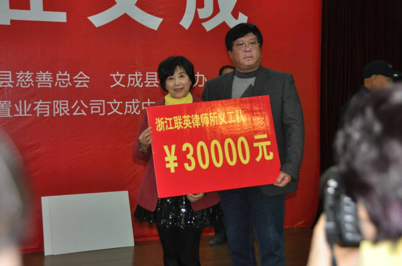 2014年3月2日,文成县宣传部、县慈善总会、县委老干部局、县文明办为纪念文成县3月5日慈善日,同时为纪念毛泽东主席题词“向雷锋同志学习”51周年,联合举办了“真情慈善 爱在文成”的文艺演出。应文成县慈善总会邀请,本所联英义工队参加演出活动。会上还进行了慈善捐款仪式,联英义工队捐款3万元,由何连英律师代表本所义工队上台举牌。到场参加会议的有县委办、县府办、县委组织部、县委宣传部、县社联、县文明办、县民政局、县残联等有关单位的领导。联英义工队精彩的歌舞节目赢得陈陈掌声,得到一致好评。