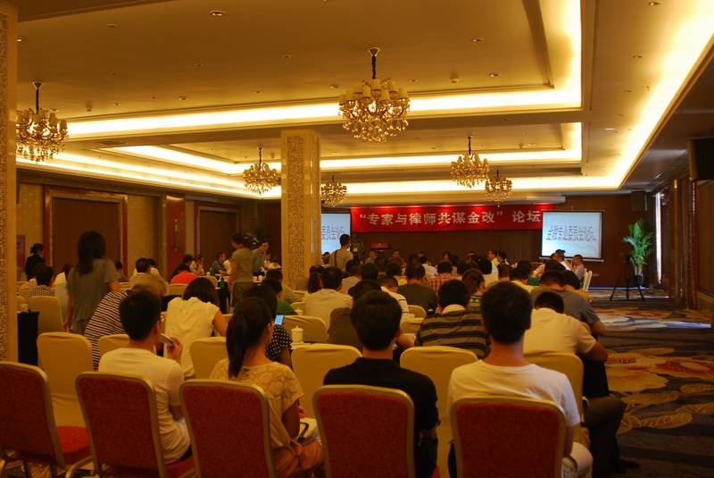 2012年8月12日, 温州市律师协会金融专业委员会举办的"专家与律师共谋金改"论坛在温州万豪商务大酒店举行。来自温州市本土的专家学者方益权、张一力、马津龙、谢浩、周松山、姜洪新、张翔、杨福明、缪心毫和俞中坚等,与我市130余名律师们聚集一堂,就温州“金改”中律师应该做什么?怎么做?如何做得好?等问题进行探讨和交流。浙江省司法厅调研员许赛莹,温州市决策咨询委员会副主任朱贵远, 温州市司法局副调研员、律管处长甘细平,温州市律师协会会长周光等领导出席了此次论坛。