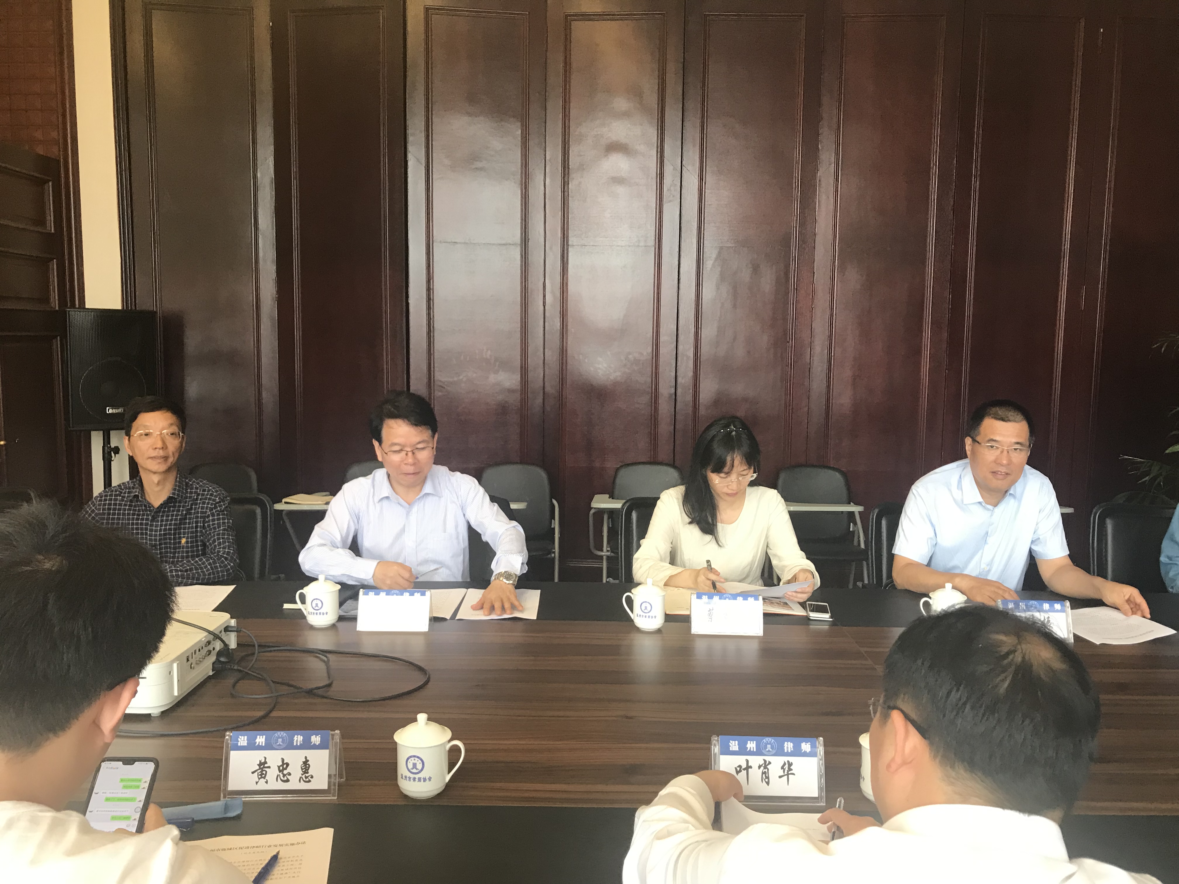 2019年5月16日,鹿城区副区长叶肖华一行莅临市律协调研。市律协会长叶连友、市司法局律师工作处处长蔡多多、市律协副会长陈兴良、严凌振等参加了座谈。