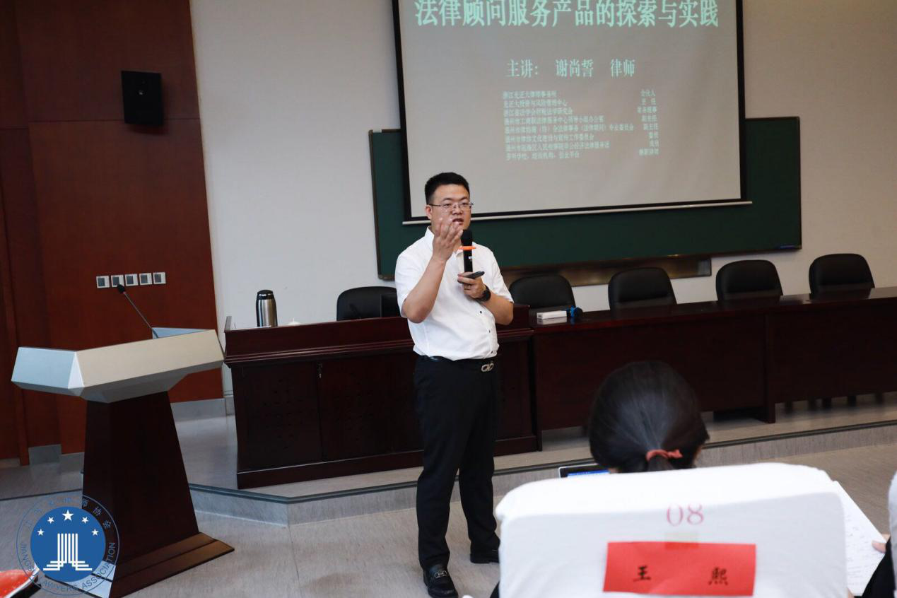 谢尚誓律师从自身的执业经验出发,详细讲述了企业法律顾问服务产品的研发、设计、服务及创新的思路及操作方法,同时结合服务企业的相关案例,分享了自己深耕企业法律顾问服务市场多年来的心得体会,并详细解读了法律服务产品的辅导精细化、项目模块化、流程标准化、成果可视化、效益可量化、服务团队化的实施方案。谢律师认为未来的法律顾问应该从诉讼律师向管理型律师、向商务伙伴型律师转型,为企业真正解决实际问题,建立法律风险防控体系,并为企业创造价值。律师的思维要向企业家思维靠拢,要具备商业思维、企业管理思维,这样才能够更好的为中小企业及企业家服务。温州是一个民营经济发达的城市,也是民营经济的发源地,江苏、上海、浙江、安徽都是大量中小企业聚集的省份,谢尚誓律师的授课引起了在场各位律师的强烈共鸣,也获得了听课学员的一致好评。