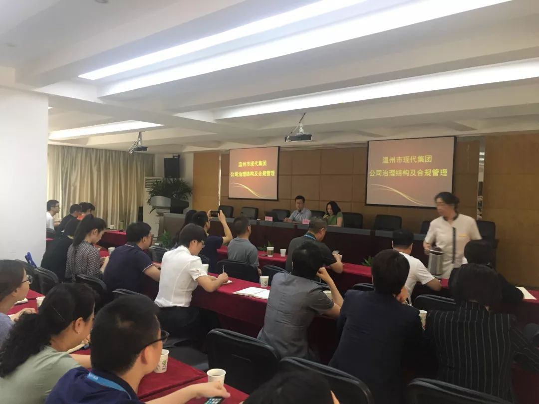 近日,北京京师(温州)律师事务所副主任潘瑞升律师受邀为温州市现代服务业投资集团有限公司(简称温州市现代集团)及其下辖单位主要负责人授课,主题是“公司治理结构及合规管理”。温州市现代集团各级中高层管理干部共计70余人现场聆听了本次讲座。