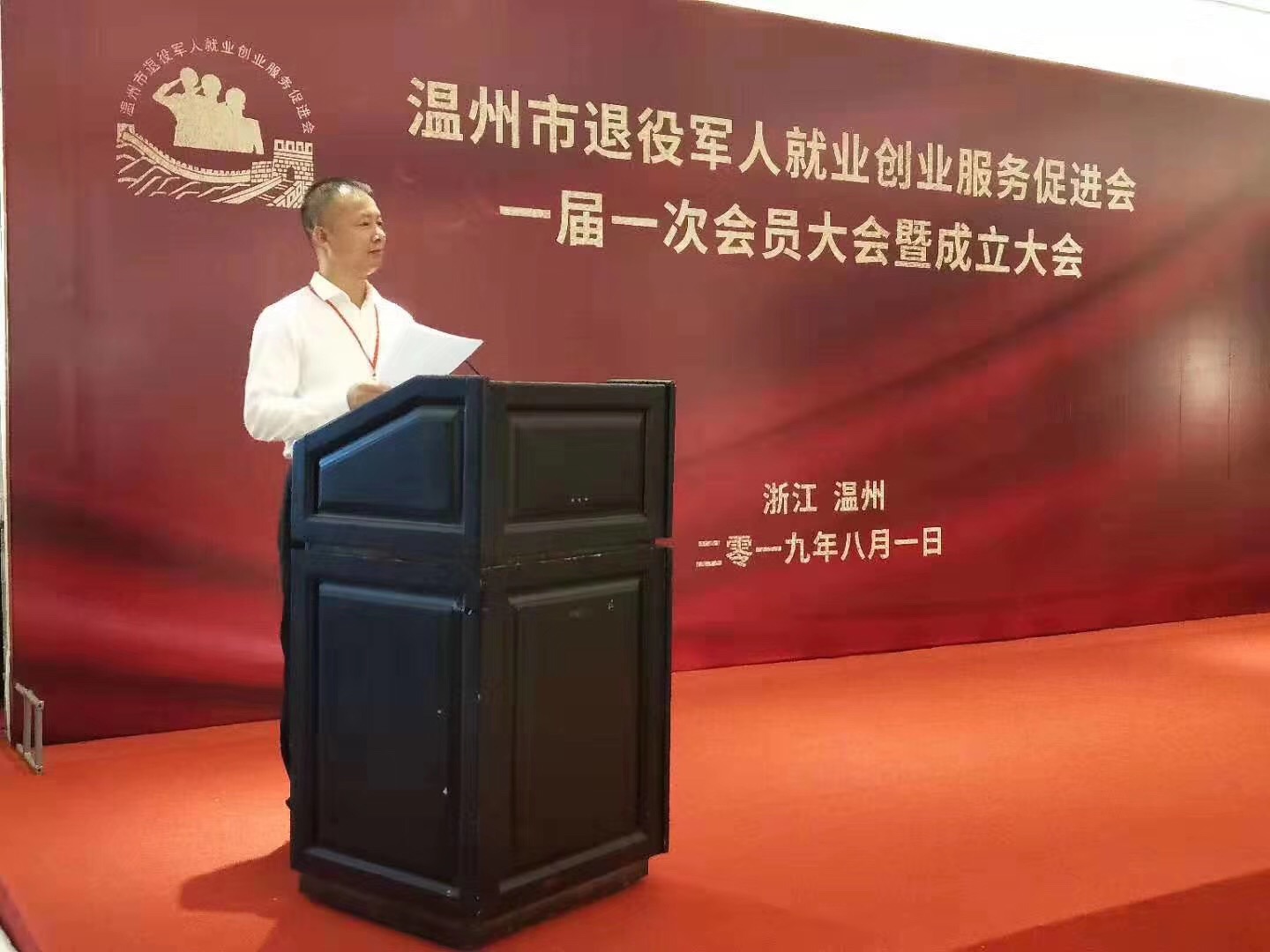 浙江省退役军人事务厅郭国松副厅长、温州市退役军人事务局张本锋局长等有关领导到会祝贺并讲话。郭国松副厅长指出,促进会要发挥温州人敢创、敢试的改革精神,充分调动社会各方面积极力,趟出一条新路,成为全省、乃至全国做好退役军人就业创业工作最成功的协会,再创“温州模式”。张本锋局长就促进会成立提出几点希望,一是要发挥促进会这个平台,用心用情去指导帮助退役军人就业创业。二是要完善运行机制,让促进会健康可持续发展。三是要把促进会打造成我市最优秀的社会团体品牌。
