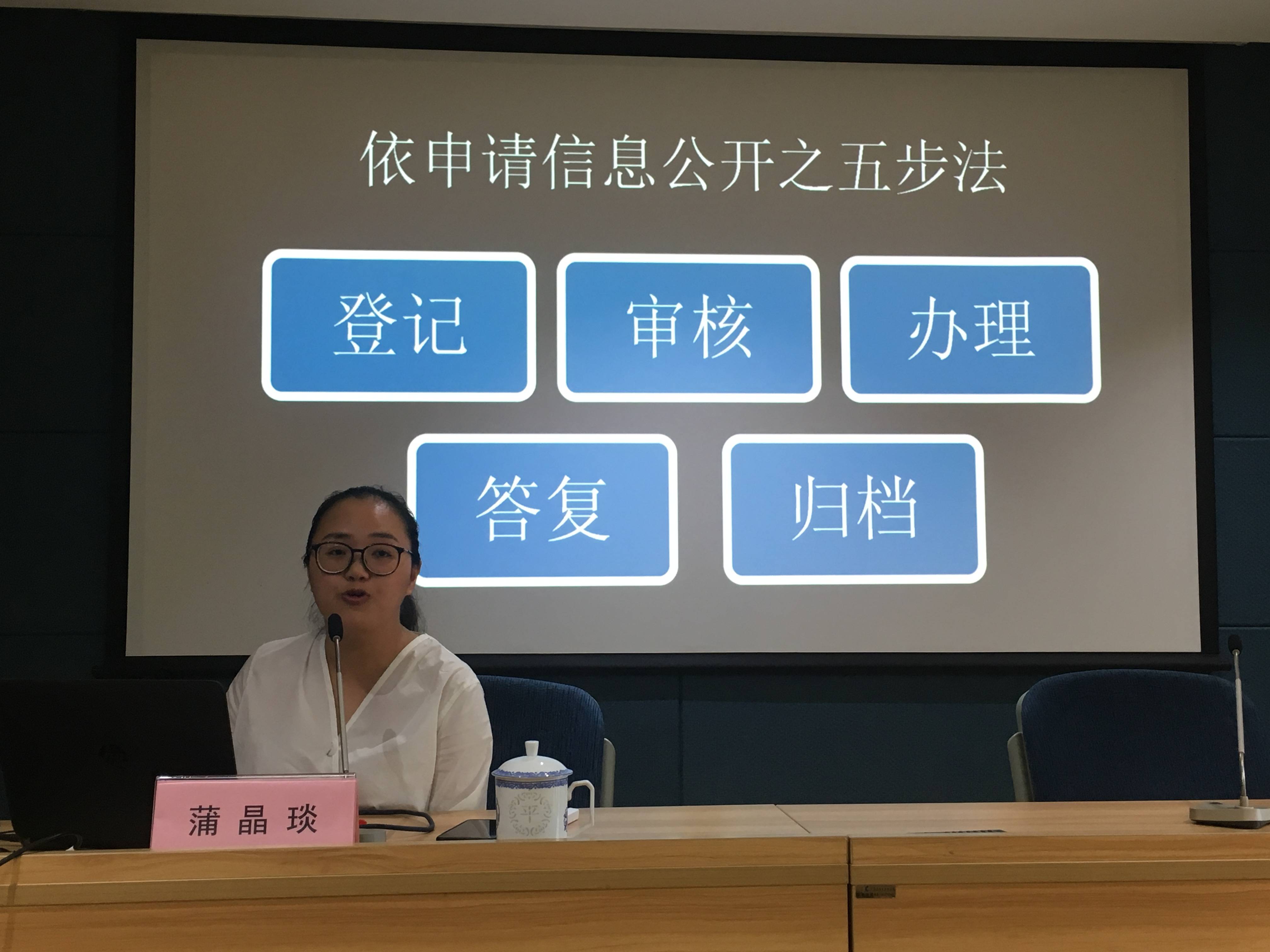 会上,蒲律师用近3小时的时间全面介绍了依申请信息公开的“五步工作法”,结合相关典型案例进行深入分析,受到各部门负责人一致好评。