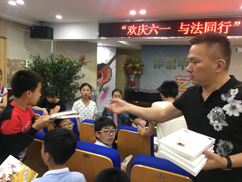 陈晓雯律师作为主讲人,从民事行为能力、预防短信诈骗和家庭暴力、诚实守信、自我保护等方面,给学生们上了一堂生动的法制教育课。课上,陈晓雯律师通过提问等方式,与学生们进行互动,学生们也展现了极高的热情,踊跃参与到课堂中来。课后,法之剑律师事务所蔡华存副主任代表浙江法之剑律师事务所,向同学们献上六一的祝福,提前祝学生们“六一”儿童节快乐,并赠送书籍作为学生们的礼物。