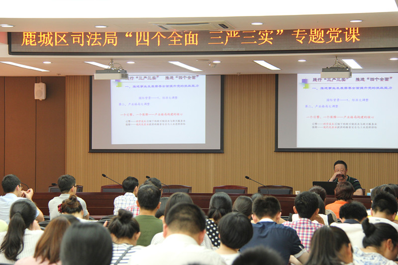 近日,鹿城区司法局在温州市司法局八楼会议室组织召开了“四个全面 三严三实”专题学习会,邀请中共温州市委党校教授梁德君做专题讲座,全区近100名党员律师参加学习会。